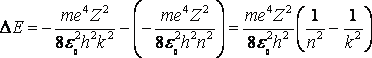 Когда электрон переходит с k-ой орбиты на n-ную, расположенную ближе к ядру, атом испускает фотон, энергия которого равна разности энергий электрона на этих уровнях. Найдем эту разность энергий.
