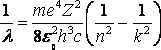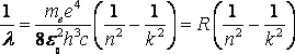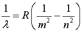 {\displaystyle {\frac {1}{\lambda }}=R\left({\frac {1}{{n'}^{2}}}-{\frac {1}{n^{2}}}\right)},