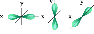Для p- орбитали (l = 1) - три равноценные ориентации в пространстве (2l + 1 = 3): m = -1, 0, +1.