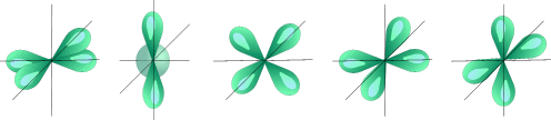 Для d- орбитали (l = 2) - пять равноценных ориентаций в пространстве (2l + 1 = 5): m = -2, -1, 0, +1, +2.