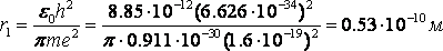 Мы получили радиус k-ой стационарной орбиты атома с порядковым номером Z. Для водорода Z=1. Найдем радиус первой (k = 1) самой внутренней орбиты, на которой электрон обладает минимальным запасом энергии.