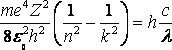 Когда электрон переходит с k-ой орбиты на n-ную, расположенную ближе к ядру, атом испускает фотон, энергия которого равна разности энергий электрона на этих уровнях. Найдем эту разность энергий.