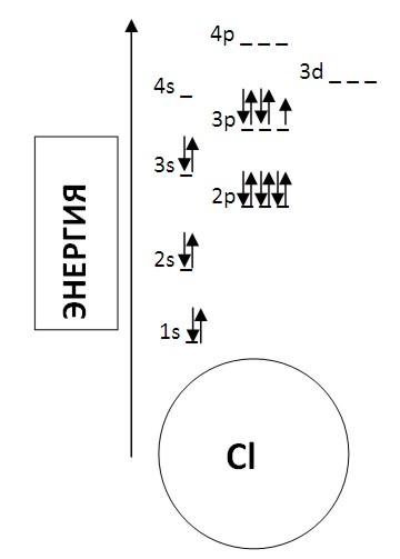 Все на диаграммах довольно понятно и наглядно, но громоздко. Используя электронную конфигурацию, диаграмму можно выразить одной короткой строкой. Так для хлора: 1s22s22p63s23p5. В электронной конфигурации указывается название орбитали энергетического уровня в верхнем индексе которой находится количество электронов, расположенных на этой орбитали.