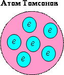 Все вещество состоит из элементарных частиц. Но вещество не состоит из элементарных частиц непосредственно. Кирпичиками или элементами, из которых построено все вещество являются атомы. До 1912 г. ученые представляли атом в виде положительно заряженного шара, внутри которого находятся отрицательно заряженные электроны. Конструкция похожая на кекс с изюминками-электронами была предложена однофамильцами Томсонами – Джозефом Джоном и Уильямом лордом Кельвином.