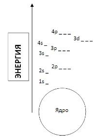 Из предыдущего материала "Модель атома", думаю, вам все на диаграмме понятно. Единственный нюанс, на который следует обратить внимание: из диаграммы видно, что 4s-орбиталь имеет меньшую энергию, чем 3d-орбиталь (тем самым нарушается правило, согласно которому, слои заполняются электронами по мере увеличения энергии).