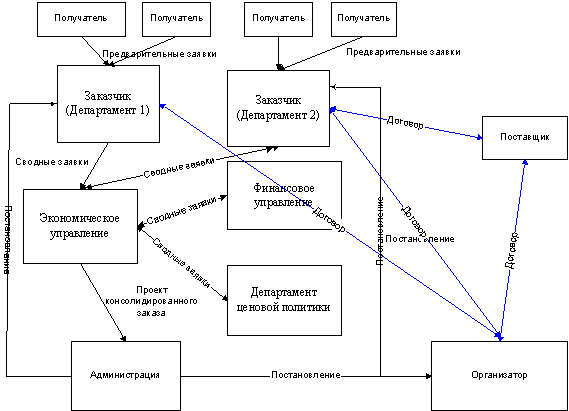 В Администрации каждая Сводная заявка визируется, уточняется и из принятых заявок формируется Консолидированный заказ по всем видам продуктов и всем Заказчикам. В случае возникновения несогласия с данными, указанными в Сводной заявке, ее возвращают Заказчику для изменения. Подготовленный проект консолидированного заказа посылается на визирование и утверждение.