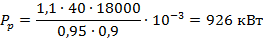 где Pр - расчетная мощность двигателя, кВт з - коэффициент запаса, равный 1,1 - производительность, м3/сек