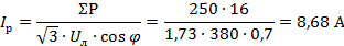 Iрасц= 1,1 × IP = 1,1 × 8,68 = 9,55