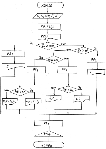 PR4 - подпрограмма вычисления параметров однозвенных LC и RC фильтров;