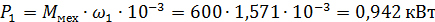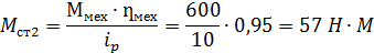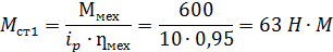 Ммех.=600 Н×м - момент нагрузки (механизма) на валу двигателя;