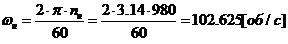 где f=50Гц - частота сети, p=3 - число пар полюсов