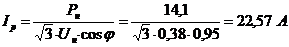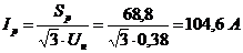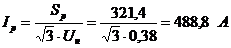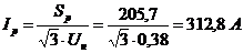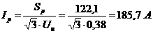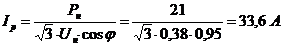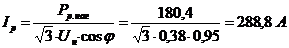 Расчетные значения номинальных токов