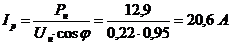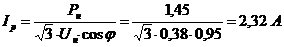 Определение номинальных токов потребителей: