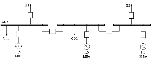 1,5 МВт. Напряжение генераторов следует взять 10,5 кВ, что соответствует