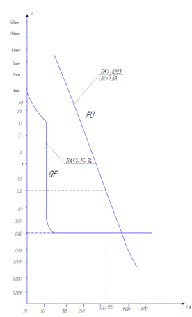 По рисунку 9.21 /10/ определим время срабатывания t=0,02 с, что не превышает