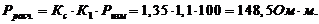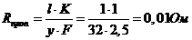 Применяем для расчета наименьшее из этих значений rиск = 10 Ом.