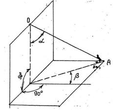 вертикальной плоскости) и в - азимутальным (в
