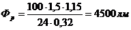 Для заданных значений коэффициентов отражения и найденного индекса помещения определим коэффициент использования h=0,32. рассчитаем световой поток одной лампы