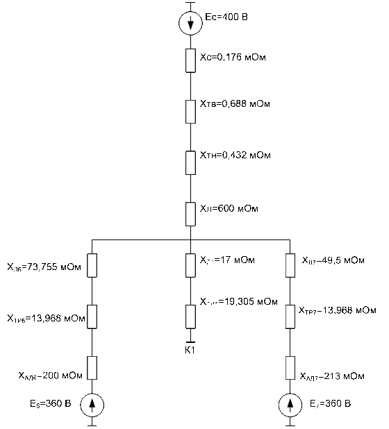 ЭДС системы: Ес=10 кВ.