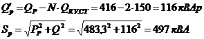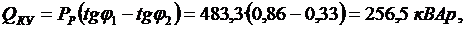По справочнику [1] выбираем две конденсаторные установки УКМ58-0,4-150У3. Тогда расчетная мощность цеха с учетом компенсации: