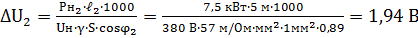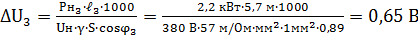 Перевіряємо кола двигунів на допустиме падіння напруги ΔU за формулами: