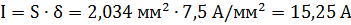 2 приймаємо щільність струму δ = 7,5 А/мм2: