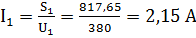 4. Визначаємо силу струму первинної обмотки: