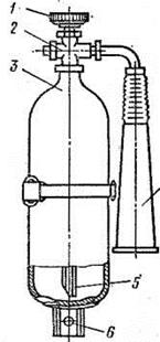 - маховик, 2 - за -порно вентиль, 3 - бал- лон, 4 - розтруб,