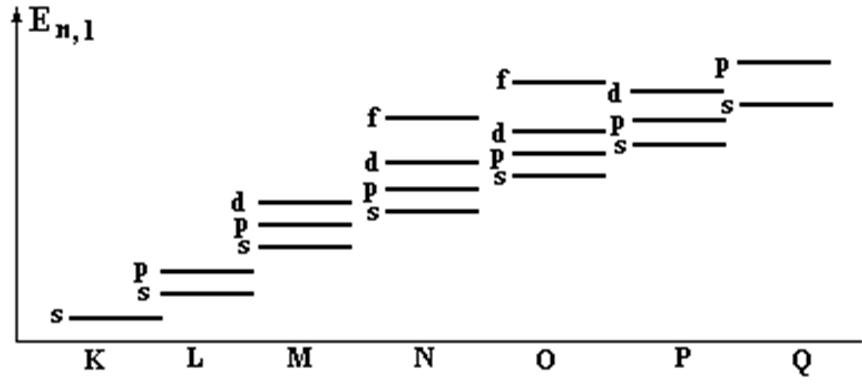 Совокупность электронов с одинаковым n (но разными l,m,mS) образует электронный слой или электронную оболочку в атоме.