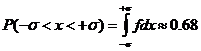 Иными словами: вероятность попадания случайной величины, описываемой нормальным законом распределения, в интервал от - σ до + σ составляет примерно 68%, соответственно, непопадания - 32%. Полезно также помнить, что вероятность того, что случайная величина будет заключена в пределах ±2σ примерно равна 95%, в пределах ±3σ - 99,7%. В последних двух случаях можно сказать: маловероятно, чтобы случайная величина выходила за указанные пределы.
