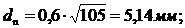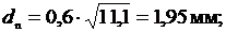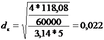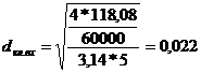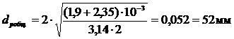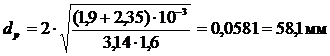 - расчетное значение диаметра.