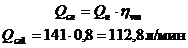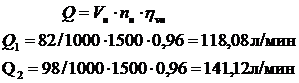минутной подаче насоса следующим соотношением: