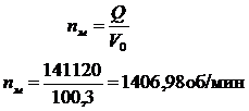 где ɳvн - объёмный КПД насоса; для предварительного расчёта принять равным 0,96;