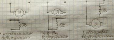 Обмотка возбуждения и якорь по отношен друг к другу включают независимо, ӀӀ, последоват или смешанно.