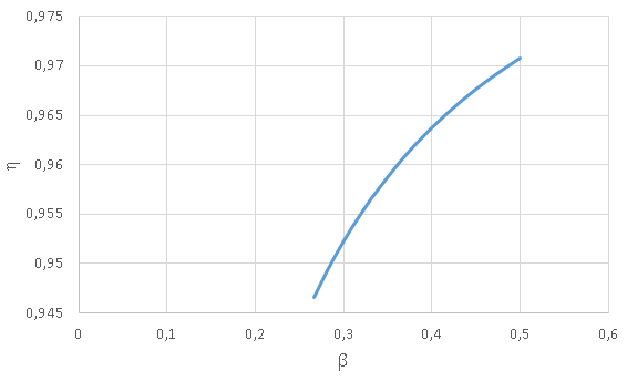Значение коэффициента нагрузки и КПД трансформатора(таблица 2)