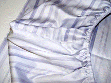 Теперь считают расход ткани: понадобится кусок шириной 162+35+35 =230 см, длиной 202+35+35=272 см. Следует помнить, что натуральные ткани дают усадку при стирке в среднем 5% по стыку и 2% по основе. Перед пошивом ткань необходимо декатировать (намочить в теплой воде, просушить и выутюжить). К примеру, для простыни на матрас 160×200×25 подойдет кусок ткани шириной 240-250 см и длиной 280 см. Технология пошива наматрасника в ОАО «Ельский КБО»: Ткань декатировать. Выкроить по чертежу. Застрочить швы углов двойным швом (сложить срезы изнанкой к изнанке, прострочить швом шириной 5 мм с закрепками на концах, вывернуть на изнанку, сложив «лицом к лицу», выправить припуски, прострочить шов шириной 7 мм с закрепками на концах, так чтобы срезы припусков первой строчки остались внутри). Померить, надев заготовку на матрас. Застрочить кулиску по периметру наматрасника, оставляя отверстие для продевания резинки. Существует несколько способов оформления края наматрасника - можно поставить резинку только по углам на расстоянии по 25 см от шва угла, а можно пришивать резинку по периметру. Продеть резинку в кулиску (длина резинки - половина периметра наматрасника) и закрепить концы резинки. Отутюжить готовое изделие.