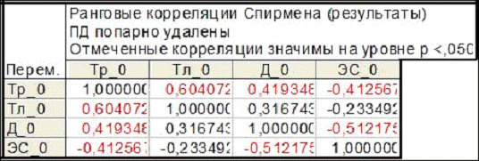 Статистическая обработка производилась при помощи программы STATISTICA 6.0 с применением ранговой корреляции Спирмена и критерий Вилкоксона.