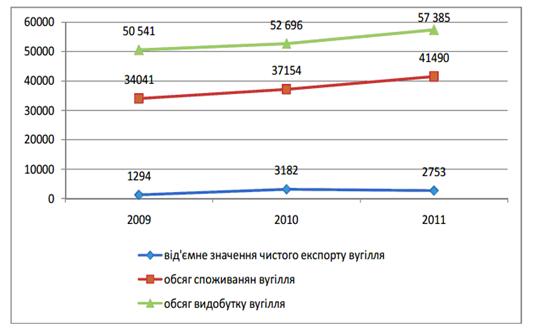 зазначених тенденцій. Аналіз співвідношення чистого експорту вугілля, обсягу