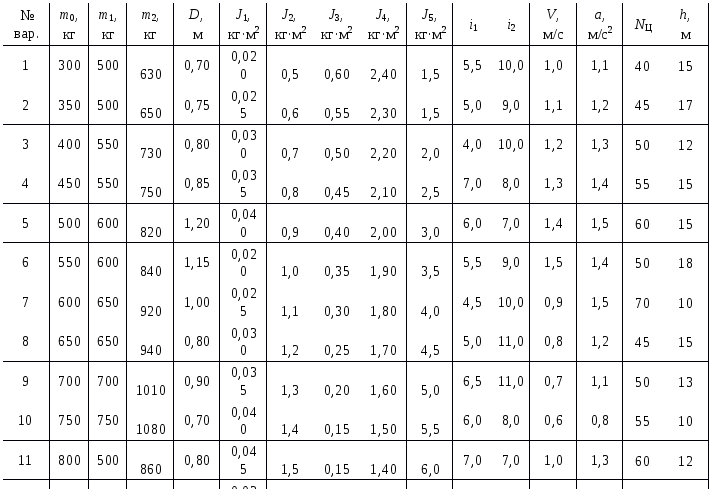 Исходные данные по вариантам