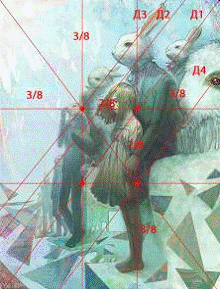 построена на диагоналях и перспективе. Линии проходящие через картину добавляют