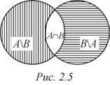 Доказательство. Если события A и B несовместны, т. е. A ∩ B = , то тогда p(A ∩ B) = p( ) = 0 и доказываемое равенство примет вид p(A B) = p(A) + p(B). Поэтому необходимо исследовать случай совместных событий A и B, т. е. когда A ∩ B ≠ . Рассмотрим равенства для множеств A, B и A B (рис. 2.5) следующего вида: