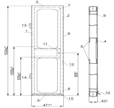 Міцність каркасу забезпечують ребра жорсткості. Каркас двері працює в умовах абразивного зносу при динамічних навантаженнях. Каркас дверей складається з наступних деталей (див. рисунок 1.1):