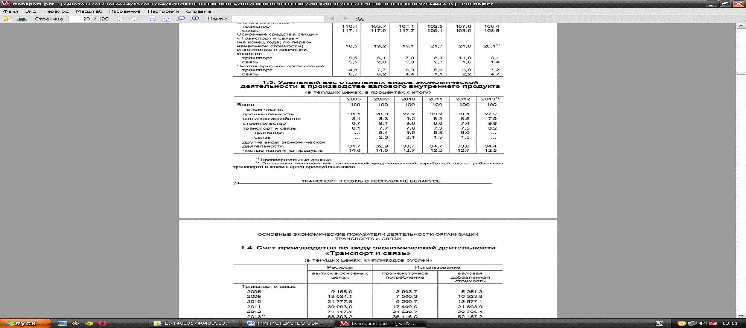 Рассмотрим ситуацию в Беларуси. Возьмём, например, такие отрасли как транспорт и связь. По данным Национального статистического сборника видно, что 15% прибыли организаций Беларуси приходится на две отрасли (табл. 3.1). Это значит, что они играют очень важную роль в экономике республики Беларусь, приносят хороший доход государству.