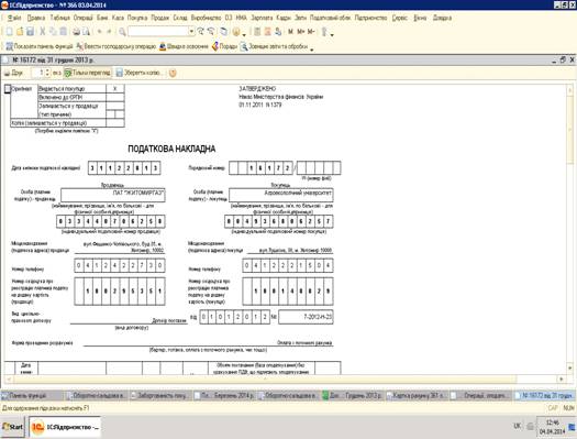 Рис.2 «Податкова накладна»