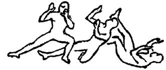Рис. 2.28. Падіння у бік випаду з перекочуванням на спину [18]