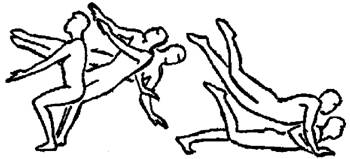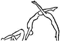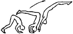 в тазостегнових суглобах, швидко відштовхнутися руками і, прогнувшись в грудній