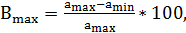 де amax - розмір (обсяг) зразка відповідно при вологості, рівної чи вище межі насичення клітинних стінок, мм3;min - розмір (обсяг) зразка відповідно при вологості в абсолютному-сухому стані, мм3.