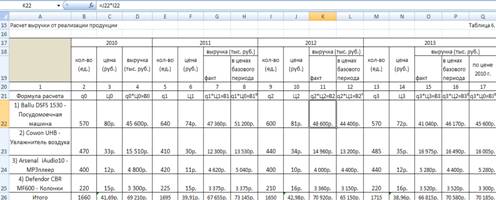 Таким образом, влияние на прибыль изменения ассортимента продукции равно приросту выручки, рассчитанному в базисных ценах, умноженному на разницу рентабельности i-ого продукта и рентабельности всего выпуска продукции.