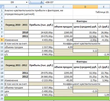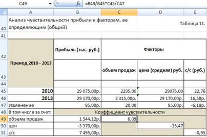 предприятия, нужно рассчитать коэффициент чувствительности/