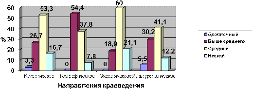краеведения находятся на среднем уровне (по историческому направлению средний